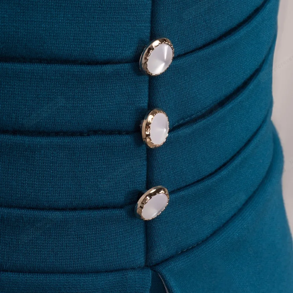 BEST SELLER One-piece Formal Wearing V Neck Lace Drape Pearl-white Button Pencil Office Dress Women Knee Length