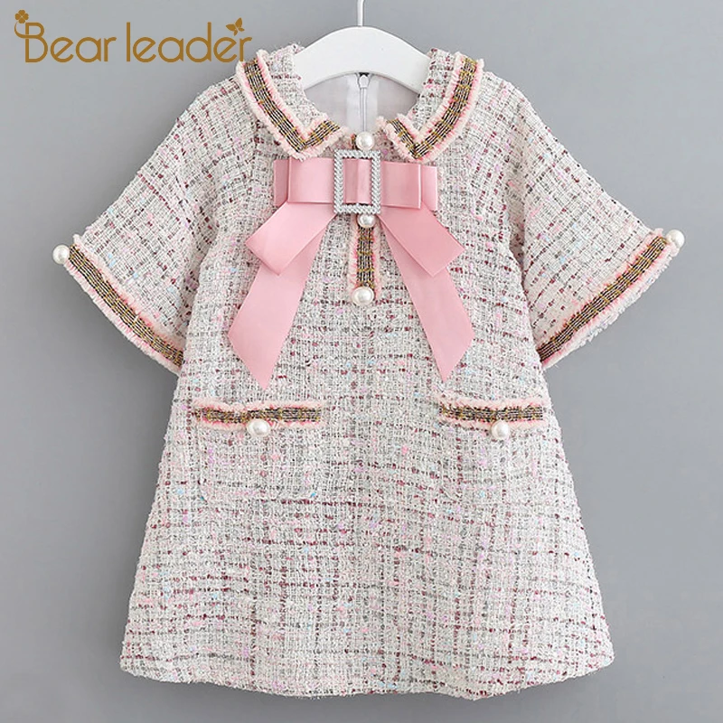 Bear Leader Girls Dress New Brand Spring Girls Sweet Dress Bow-knot Princess Dresses Pearl Elegant