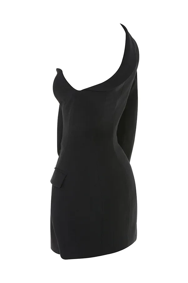 Best Seller Winter Dress Women Fashion Sexy Black BCotton Dress One Single Long Sleeve Elegant Celebrity Mini P